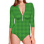 Green Houndstooth Pattern Print Long Sleeve Swimsuit
