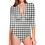 Are you looking for unique swimsuits? Check our Grey And White Houndstooth Pattern Print Long Sleeve Swimsuit on GearFrost. Our swimsuits are handcrafted to the highest quality standards and made-to-order for you!