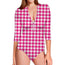 Are you looking for unique swimsuits? Check our Hot Pink And White Houndstooth Print Long Sleeve Swimsuit on GearFrost. Our swimsuits are handcrafted to the highest quality standards and made-to-order for you!