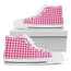 Are you looking for unique sneakers? Check our Hot Pink And White Houndstooth Print White High Top Sneakers on GearFrost. Our sneakers are handcrafted to the highest quality standards and made-to-order for you!