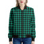 Make a bold statement with the sleek and stylish Jungle Green And Black Houndstooth Print Women's Bomber Jacket. This women's bomber jacket combines a classic silhouette with modern design, offering the perfect mix of fashion and functionality. Whether you're layering it for a chilly day or adding a finishing touch to your outfit, this jacket is designed to keep you comfortable while elevating your style.