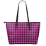 Are you looking for unique leather tote bags? Check our Magenta Pink And Black Houndstooth Print Leather Tote Bag With Zipper on GearFrost. Our tote bags are handcrafted to the highest quality standards and made-to-order for you!