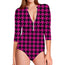 Magenta Pink And Black Houndstooth Print Long Sleeve Swimsuit