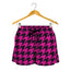 Stay stylish and comfortable with the versatile Magenta Pink And Black Houndstooth Print Women's Shorts. These women’s shorts are designed to provide the perfect blend of practicality and flair, making them an essential piece for your active and casual wardrobe. Whether you’re heading to the gym, enjoying a morning run, or relaxing by the water, these shorts are crafted to keep you looking and feeling your best.
