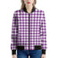 Make a bold statement with the sleek and stylish Purple And White Houndstooth Print Women's Bomber Jacket. This women's bomber jacket combines a classic silhouette with modern design, offering the perfect mix of fashion and functionality. Whether you're layering it for a chilly day or adding a finishing touch to your outfit, this jacket is designed to keep you comfortable while elevating your style.