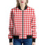 Make a bold statement with the sleek and stylish Red And White Houndstooth Pattern Print Women's Bomber Jacket. This women's bomber jacket combines a classic silhouette with modern design, offering the perfect mix of fashion and functionality. Whether you're layering it for a chilly day or adding a finishing touch to your outfit, this jacket is designed to keep you comfortable while elevating your style.