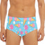 Stay confident at the pool or beach with the Pink Ice Cream Pattern Print Men's Triangle Swim Briefs. Designed with a blend of 88% polyester and 12% spandex, these swim briefs provide comfort, stretch, and support for everyday swimwear use. The smooth fabric and regular fit make them practical for both swimming and lounging.