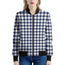 Make a bold statement with the sleek and stylish Navy And White Gingham Pattern Print Women's Bomber Jacket. This women's bomber jacket combines a classic silhouette with modern design, offering the perfect mix of fashion and functionality. Whether you're layering it for a chilly day or adding a finishing touch to your outfit, this jacket is designed to keep you comfortable while elevating your style.
