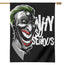 Are you looking for unique house flags? Check our Laughing Joker Why So Serious Print House Flag on GearFrost. Our flags are handcrafted to the highest quality standards and made-to-order for you!