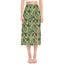 Green Tropical Palm Leaf Pattern Print Side Slit Midi Skirt