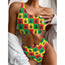 Reggae Marijuana Leaf Pattern Print One Shoulder Bikini Set