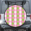 USE THE TIRE COVER SIZE CALCULATORAre you looking for unique tire covers? Check our Green Pink And White Argyle Print Leather Spare Tire Cover on GearFrost. Our tire covers are handcrafted to the highest quality standards and made-to-order for you!