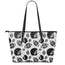Black And White Dachshund Pattern Print Leather Tote Bag With Zipper