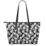 Black And White Dachshund Pattern Print Leather Tote Bag With Zipper