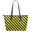 Are you looking for unique leather tote bags? Check our Black And Yellow Warning Striped Print Leather Tote Bag With Zipper on GearFrost. Our tote bags are handcrafted to the highest quality standards and made-to-order for you!