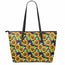 Black Sunflower Pattern Print Leather Tote Bag With Zipper