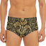 Stay confident at the pool or beach with the Gold Om Lotus Print Men's Triangle Swim Briefs. Designed with a blend of 88% polyester and 12% spandex, these swim briefs provide comfort, stretch, and support for everyday swimwear use. The smooth fabric and regular fit make them practical for both swimming and lounging.