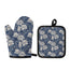The White And Blue Lotus Flower Print Oven Mitt And Pot Holder Set is a reliable kitchen essential designed to keep your hands and surfaces safe during everyday cooking. Made from durable polyester with an insulation cotton lining, this set offers comfort and practical heat resistance for common kitchen tasks.