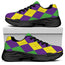Mardi Gras Argyle Pattern Print Black Running Shoes