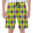 Mardi Gras Argyle Pattern Print Men's Shorts