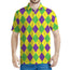 Mardi Gras Argyle Pattern Print Men's Short Sleeve Shirt
