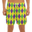 Mardi Gras Argyle Pattern Print Men's Shorts