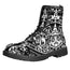 Step out with confidence in the Black And White Maya Calendar Print Lace-Up Boots. Built with a 100% vegan PU leather upper and a durable rubber outsole, these lace-up boots balance everyday comfort with reliable traction—great for daily wear without overpromising performance.
