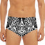 Stay confident at the pool or beach with the Black And White Maya Calendar Print Men's Triangle Swim Briefs. Designed with a blend of 88% polyester and 12% spandex, these swim briefs provide comfort, stretch, and support for everyday swimwear use. The smooth fabric and regular fit make them practical for both swimming and lounging.