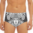 Stay confident at the pool or beach with the Blue And White Mayan Statue Print Men's Triangle Swim Briefs. Designed with a blend of 88% polyester and 12% spandex, these swim briefs provide comfort, stretch, and support for everyday swimwear use. The smooth fabric and regular fit make them practical for both swimming and lounging.