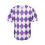White And Purple Argyle Pattern Print Men's Baseball Jersey