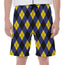 Are you looking for unique men's beach shorts? Check our Blue Black And Yellow Argyle Print Men's Beach Shorts on GearFrost. Our shorts are handcrafted to the highest quality standards and made-to-order for you!