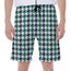 Are you looking for unique men's beach shorts? Check our Blue Green And White Houndstooth Print Men's Beach Shorts on GearFrost. Our shorts are handcrafted to the highest quality standards and made-to-order for you!