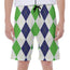Are you looking for unique men's beach shorts? Check our Green White And Navy Argyle Print Men's Beach Shorts on GearFrost. Our shorts are handcrafted to the highest quality standards and made-to-order for you!