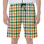 Are you looking for unique men's beach shorts? Check our White Orange And Green Plaid Print Men's Beach Shorts on GearFrost. Our shorts are handcrafted to the highest quality standards and made-to-order for you!
