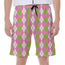 Are you looking for unique men's beach shorts? Check our White Pink And Green Argyle Print Men's Beach Shorts on GearFrost. Our shorts are handcrafted to the highest quality standards and made-to-order for you!