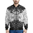 Black White Rose Floral Pattern Print Men's Bomber Jacket