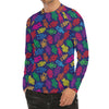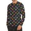Pixel Spaceships Pattern Print Men's Long Sleeve Rash Guard