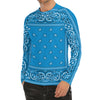 Light Blue Paisley Bandana Print Men's Long Sleeve Rash Guard