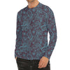 Turquoise Paisley Pattern Print Men's Long Sleeve Rash Guard