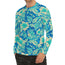 Turquoise Paisley Pattern Print Men's Long Sleeve Rash Guard