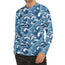 Turquoise Paisley Pattern Print Men's Long Sleeve Rash Guard