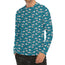 Turquoise Paisley Pattern Print Men's Long Sleeve Rash Guard