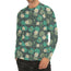 Turquoise Paisley Pattern Print Men's Long Sleeve Rash Guard