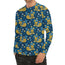 Turquoise Paisley Pattern Print Men's Long Sleeve Rash Guard