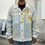 Yellow And White Checkered Pattern Print Men's Shirt Jacket