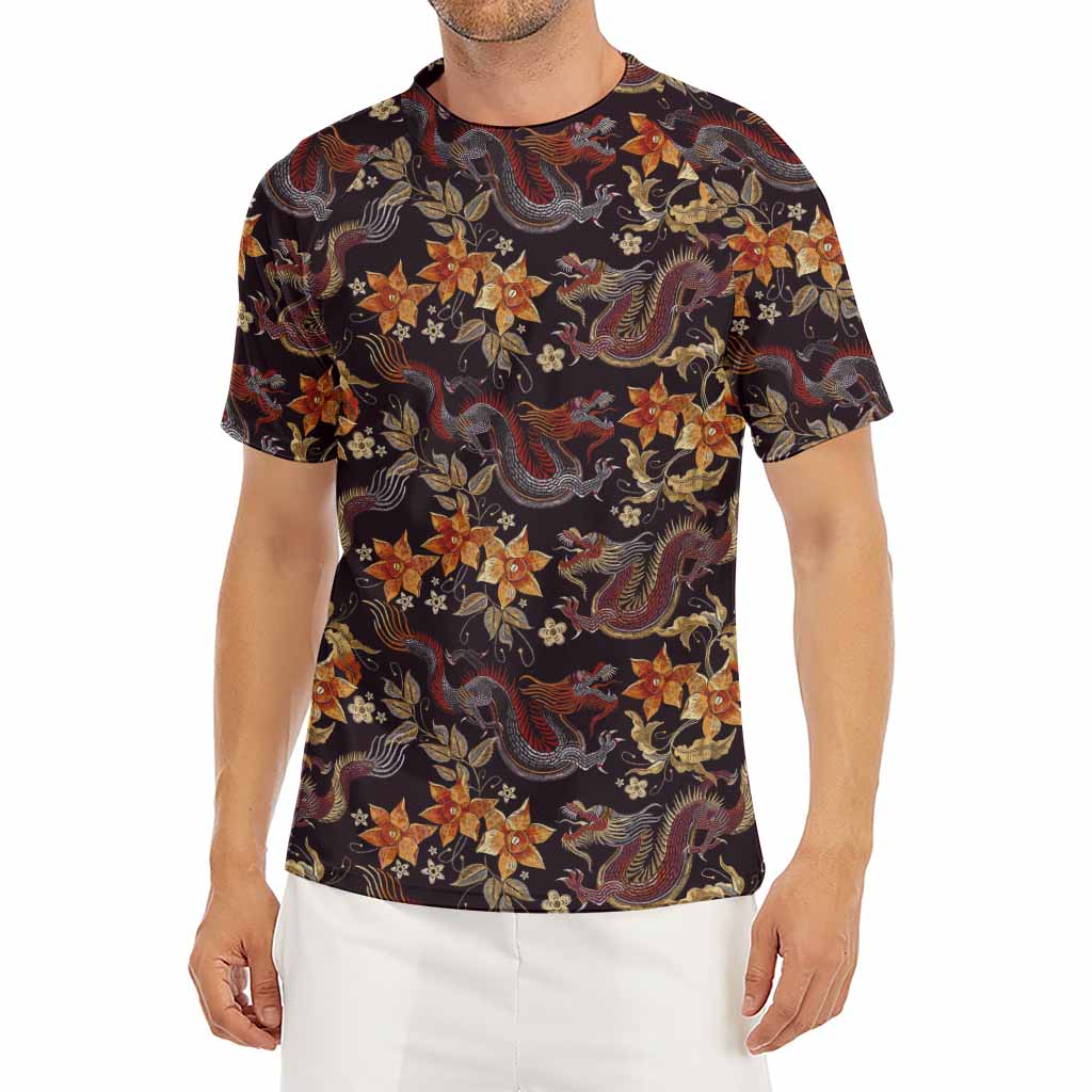 Vintage Dragon Flower Pattern Print Men's Short Sleeve Rash Guard