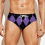 Are you looking for unique men's swim briefs? Check our Black And Purple Argyle Pattern Print Men's Swim Briefs on GearFrost. Our swim briefs are handcrafted to the highest quality standards and made-to-order for you!