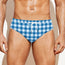 Are you looking for unique men's swim briefs? Check our Blue And White Check Pattern Print Men's Swim Briefs on GearFrost. Our swim briefs are handcrafted to the highest quality standards and made-to-order for you!