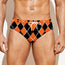 Are you looking for unique men's swim briefs? Check our Orange And Black Halloween Argyle Print Men's Swim Briefs on GearFrost. Our swim briefs are handcrafted to the highest quality standards and made-to-order for you!