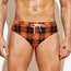 Are you looking for unique men's swim briefs? Check our Orange Grey And White Tartan Print Men's Swim Briefs on GearFrost. Our swim briefs are handcrafted to the highest quality standards and made-to-order for you!